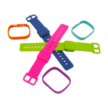 Sættet indeholder 3 farverige urremme og 3 matchende rammer, så dit barn nemt kan tilpasse urets look efter humør og stil.